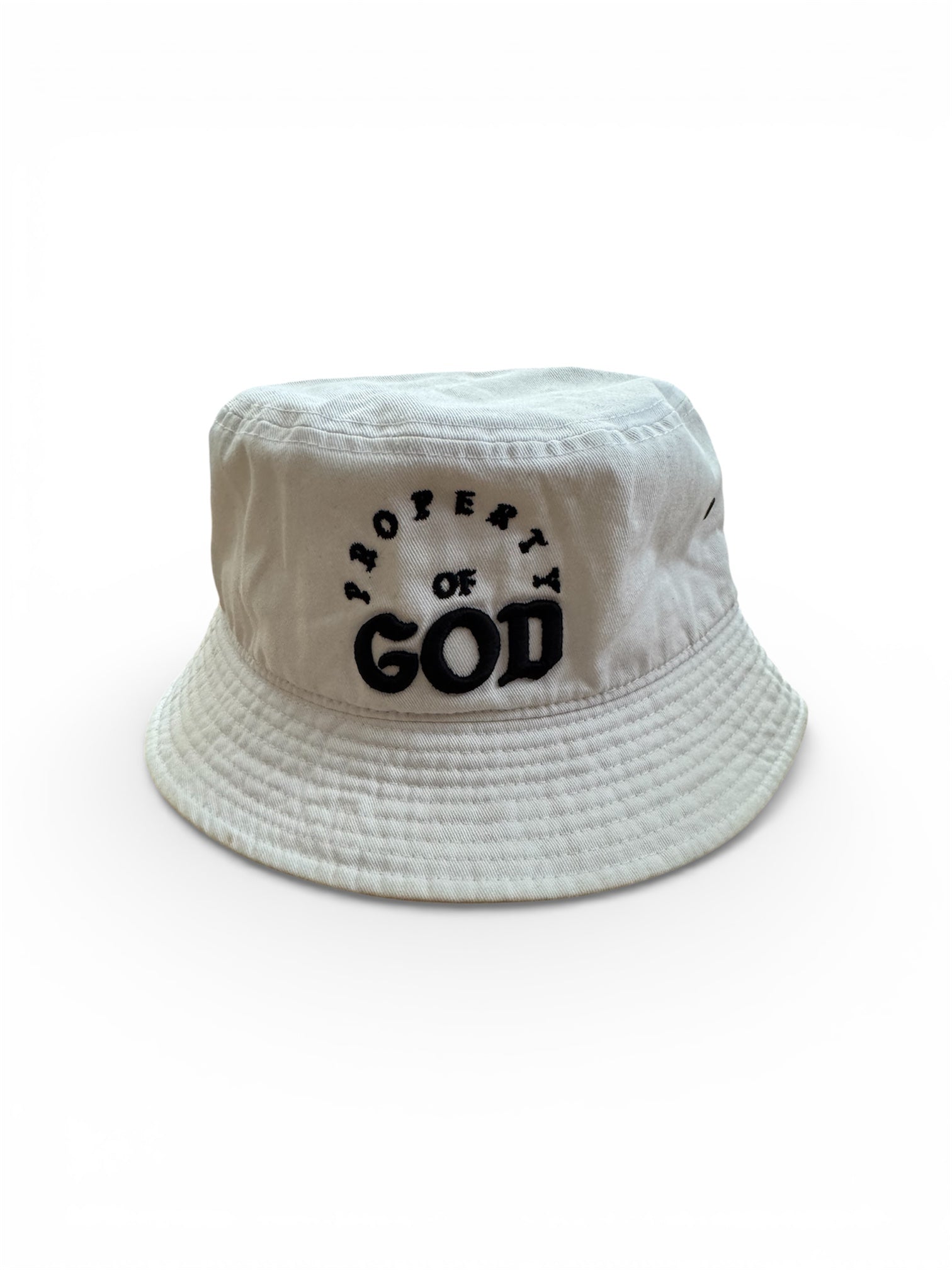 White Bucket Hat with Black Embroidery